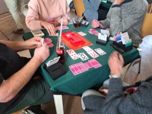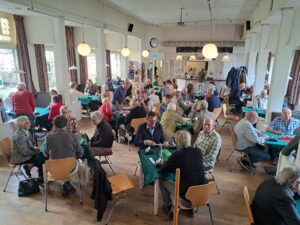 AMSTERDAM – Het was een drukke bedoeling op de oktoberdrive van Rainbow Bridge Amsterdam. Buiten liepen tienduizenden mensen richting het Museumplein voor de rode-lijn-demonstratie tegen het geweld in Gaza. Binnen was de bovenzaal van buurthuis Lydia heel vol met 35 paren die aan 18 tafels speelden.